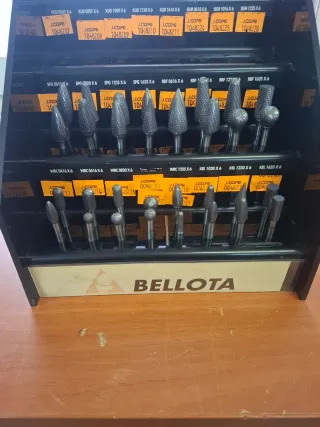 Set de 33 brocas de carburo de tungsteno de la marca Bellota. Son nuevas y vienen en su estuche organizador. COMPLETAMENTE NUEVAS SE VENDEN JUNTAS PRECIO NUEVAS POR UNIDAD ULTIMA FOTO Las fresas de carburo de tungsteno se usan para cortar, moldear, desbastar y tallar materiales duros con alta precisión y eficiencia en diversas industrias, destacando en odontología para preparar cavidades dentales y eliminar caries, en manicura y pedicura para quitar esmalte permanente o gel, y en industria para trabajar metales, madera, grabado y fundición, aprovechando su extrema dureza y resistencia al calor, lo que permite trabajos limpios y d
