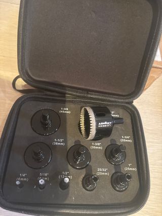Set de brocas diamantadas para cortes precisos en vidrio, azulejos y cerámica. Incluye una variedad de tamaños para diferentes aplicaciones. - Broca principal diamantada de 50mm (2). - Tamaños adicionales: 1-3/4 (45mm), 1-1/2 (38mm), 1-3/8 (35mm), 1-1/4 (32mm), 1 (25mm), 25/32 (20mm), 1/2 (12mm), 5/16 (8mm), 1/4 (6mm). - Estuche organizador de espuma.