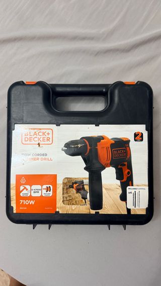 Taladro percutor Black+Decker de 710W, ideal para trabajos en casa. Se entrega en su maletín original. Nunca usado conserva los precintos de seguridad - Potencia: 710W - Velocidad: 0-47600 RPM - Incluye 4 brocas.