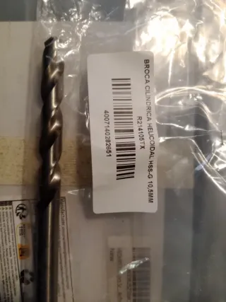 Broca helicoidal de alta velocidad HSS-G fabricada en Alemania. herramienta de alta calidad para torno. Garantía alemana. Alta calidad Bcn centro envíos. - Diámetro: 10.5 mm - Material: HSS-G (acero rápido con cobalto) - Tipo: Cilíndrica helicoidal