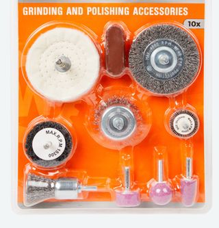 Kit de accesorios para limpieza y pulido. - Cepillo de alambre para limpieza. - Cepillo de fieltro para pulir. - Cepillo de alambre para metal. - Discos de pulido. - Brocas de lijado.