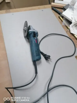 Amoladora angular Bosch en buen estado. Herramienta eléctrica para trabajos de corte y desbaste. - Mango ergonómico para un mejor agarre. - Disco de corte incluido.