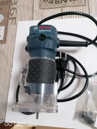 Fresadora de mano Bosch GKF 550 Profesional. - Diseño compacto y ergonómico. - Base transparente para mejor visibilidad. - Cable de alimentación incluido.