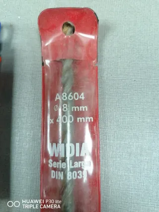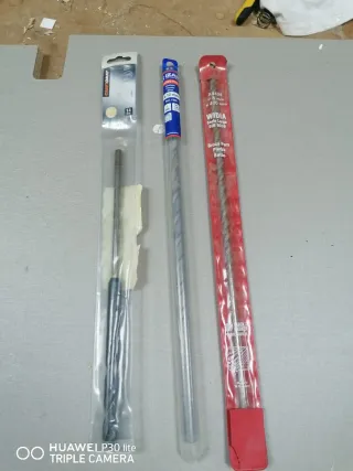 Lote de tres brocas para trabajos de albañilería. - Broca Craftomat de 14 mm. - Broca ZAR de 12 mm x 400 mm. - Broca WIDIA de 8 mm x 400 mm.
