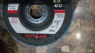Disco de 125 milímetros de lija o milhojas Metalfix,de grano P40.Hay 14 discos.El precio es 1'80 euros cada disco.