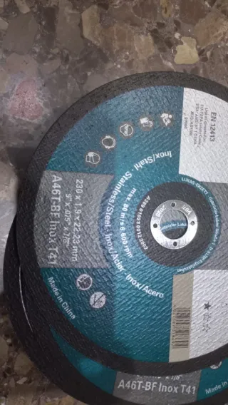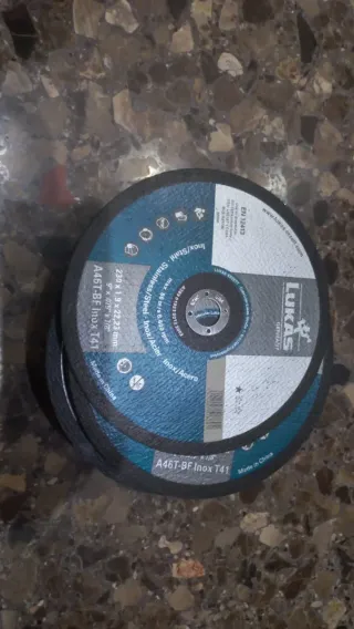 Disco de corte Lukas para acero inoxidable y metales,de 230 × 1'9 mm. - Medidas: 230 x 1,9 x 22,23 mm. -El precio es 2 euros cada disco.