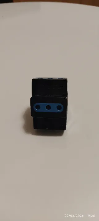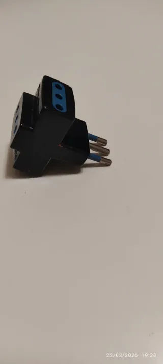Adaptador para enchufes eléctricos. - Color negro con detalles en azul. - Diseño compacto.