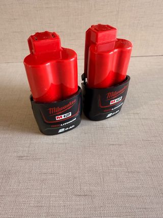 Se venden dos baterías Milwaukee M12 REDLITHIUM de 2.0Ah. - Compatibles con las herramientas de la gama M12. - Capacidad de 2.0 Amperios Sin caja