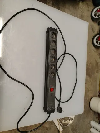 Regleta de alimentación con seis enchufes y un interruptor. - Longitud del cable: 3 metros. - Número de enchufes: 6. - Interruptor de encendido/apagado.