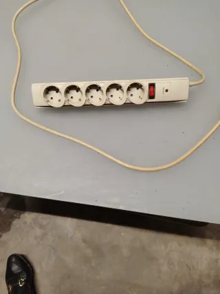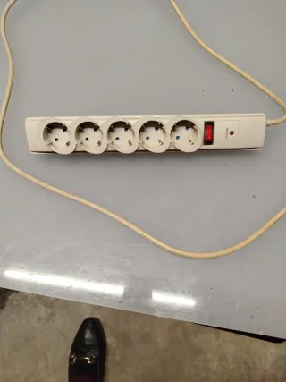 Regleta de enchufes con cinco tomas y un interruptor general para controlar la alimentación de todos los dispositivos conectados. - Cinco enchufes universales. - Interruptor de encendido/apagado. - Cable de 1,40 metros.