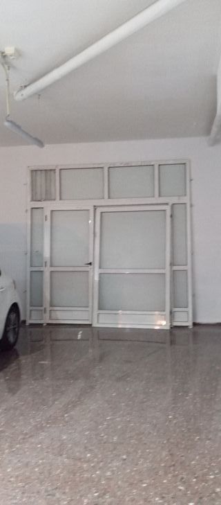 Puerta de aluminio en color blanco con unas medidas de 3 metros de ancho por 3 metros de alto. - Marco de aluminio. - Paneles de vidrio esmerilado.