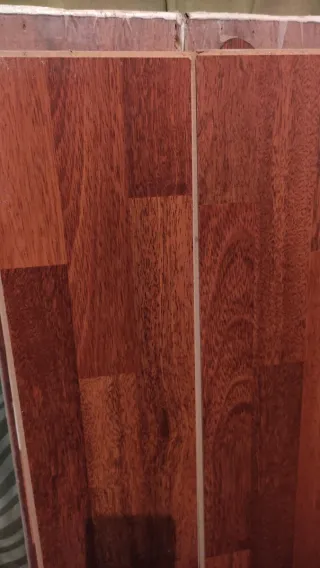 Suelo vinílico SPC de alta calidad, imitación madera. - Fácil instalación. - Resistente al agua. - Aspecto moderno y natural. 10€m² Lamas de 23*122 Más de 150m2 Es muy bonito, en tono color miel. Ha tenido un mes de uso porque en hormigón directo no quedó bien. Para poner encima de otro suelo, genial. Lleva ya la base de aislamiento incorporada. El rodapié sigue envasado, solo unos pocos se probaron.