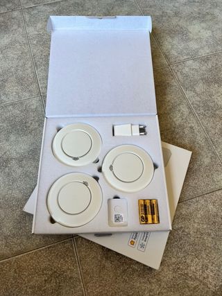 Kit de 3 detectores de humo inteligentes Meross. - Compatible con Apple Home y SmartThings. - Modelo: GS559AH.