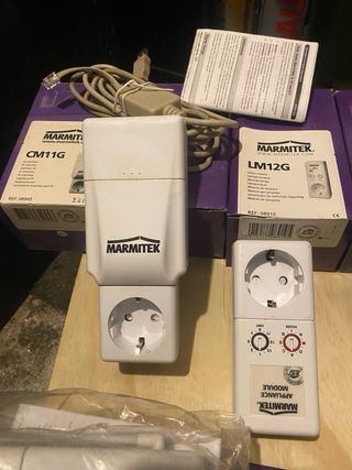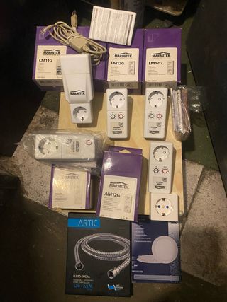 Se vende lote de reguladores de luz de la marca Marmitek. - Incluye modelos CM11G, LM12G y AM12G. - Varios enchufes y módulos. - También se incluye una manguera de ducha Artic. Todo por 29€.