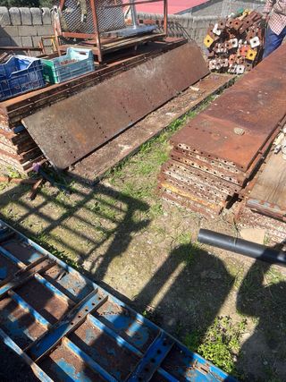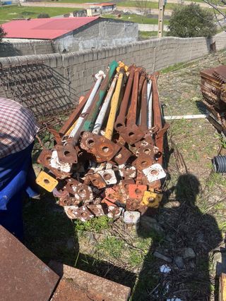 Pilares de 3M 48 unifades con herrajes Puntales de 3,4,5 varios Unos 600 puntales Z para tijeras de cerramiento 3M 44u Malla 4M ancho Chapas de pilares 50x50cm