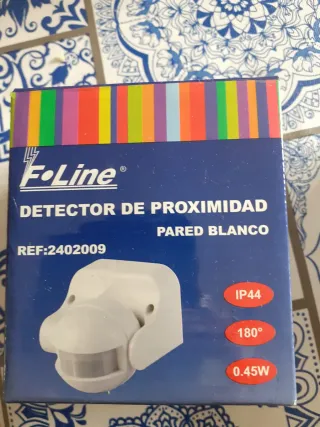 Detector de proximidad F-Line para pared en color blanco. - Modelo: DETECTOR DE PROXIMIDAD - Referencia: 2402009 - Protección: IP44 - Ángulo de detección: 180° - Consumo: 0.45W