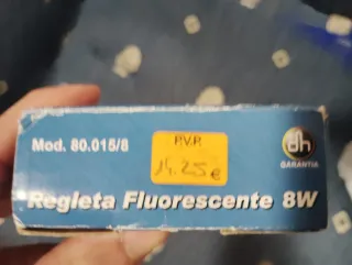 Regleta fluorescente de la marca Electro DH, modelo 80.015/8, con un recambio incluido. Tengo 3 unidades. Precio por unidad. - Fluorescente de alta luminosidad. - Incluye cable y clavija de conexión. - Interruptor incorporado. - Kit completo de instalación. - Múltiples aplicaciones. - Potencia de 8W. - Fluorescente de alta luminosidad. - Incluye cable y clavija de conexión. - Interruptor incorporado. - Kit completo de instalación. - Múltiples aplicaciones. - Voltaje: 230V AC - 50 Hz.