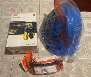 Se vende pack de EPI’s, todos a estrenar, sin ningún uso, empaquetados. Consta de: - Gafa protección SAFETOP SPACER-ONE universal ocular claro 1F. - Casco seguridad SAFETOP SP alto brillo, cierre pinlock ligero. - Orejeras protección auditiva 3M PELTOR acolchadas, compatible con gafas y mascarillas. También se venden por separado (consultar). Hago envíos o entrega en mano. Cualquier duda, consulten sin problema.
