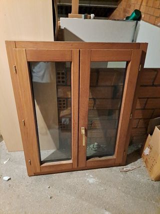 ventana de madera interior y aluminio por fuera con vidrios de cámara