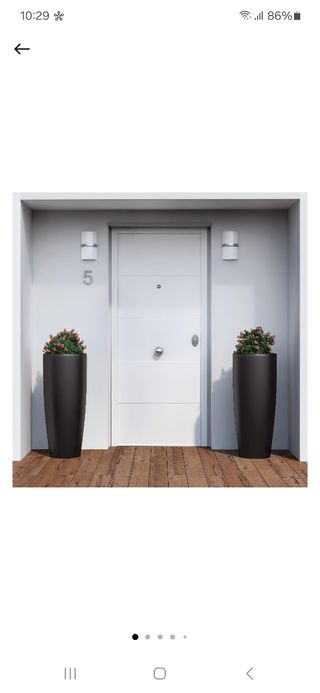 Puerta de entrada acorazada Blanca en su caja sin abrir, comprada en el Leroy merlín, la vendo por que decidimos poner otro color y se nos pasó el tiempo de devolución. Medidas ancho 89× grosor 9,8× Alto 206