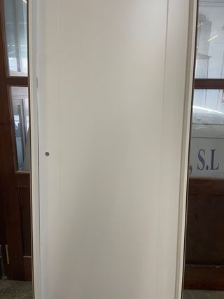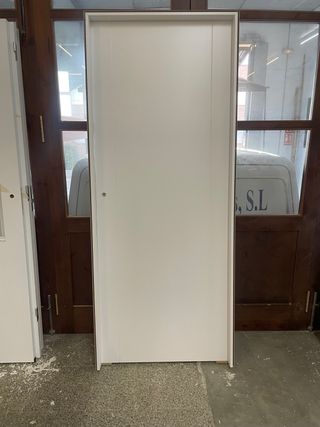 Puerta blanca con marco incluido. - Diseño liso y moderno. - Marco de madera.