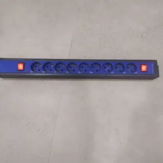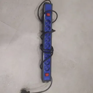 Regleta de corriente con ocho enchufes y dos interruptory casi cuatro m.de cable en general. - Color azul. - Diseño alargado. - Cable de alimentación incluido.