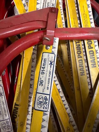 Lote de 40 sierras para cortar madera. - Color rojo y amarillo. - Incluye la sierra (nueva a estrenar) y el arco -Hay modelos de 36”x914cm y otros de 30”x762cm y tambien unas azules En total hay 40 unidades listas para estrenar como nuevas. Algunas son marca bellota (vendo todo el pack por 40€