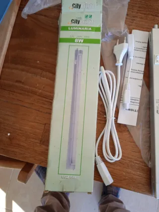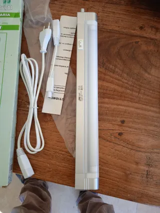 Lámpara lineal de 8W, ideal para iluminar espacios interiores. Su diseño es moderno y funcional. - Potencia: 8W. - Color: Plateado. - Incluye cable de alimentación.