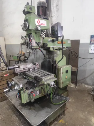 Fresadora de torreta marca Lagun, modelo FTV5SP. Máquina industrial robusta y versátil. - Mesa de trabajo amplia. - Controles manuales. - Base con bandeja recogevirutas - Amarre neumático -Husillos a bolas