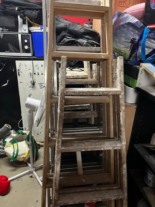 -Escaleras 5 peldaños de madera 20€/und -Escalera 7 peldaños de madera 50€ -Escalera de 3 cuerpos con 7 peldaños cada uno de aluminio 200€