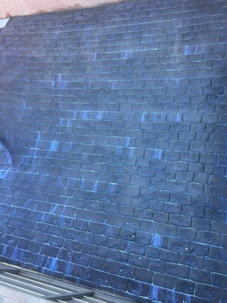Superficie de hormigón impreso con acabado de ladrillo. - Diseño de ladrillo. - Color oscuro con detalles en azul.