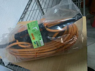 Cable alargador de color naranja de la marca Simon. Nuevo tengo 2 unidades Precio unidad 15 € Nuevo en su embalaje original - Longitud de 20 metros. - Enchufe y toma de corriente. - Empaquetado original.