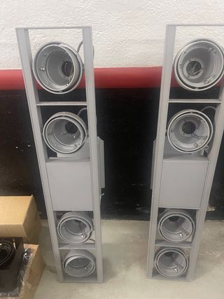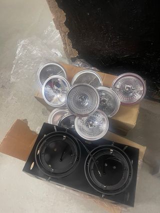 -Conjunto de dos lámparas de diseño alargado, ideales para iluminación de espacios comerciales. -2 conjutos de 2 bombillas de focos para empotrar - Estructura principal de metal. -Bombillas incluidas (falta transformador)