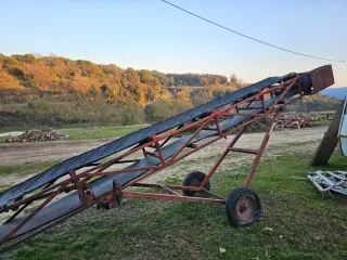 Cinta transportadora de 6 metros, ideal para mover materiales. - Estructura metálica robusta. - Banda de goma resistente. - Ruedas para facilitar el desplazamiento. Se vende por cierre de negocio. Funciona perfecta.