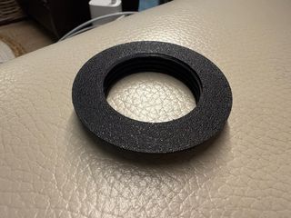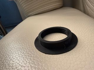 Anillo de fijación para portalámparas con rosca E27. Fabricado en plástico negro con acabado texturizado. - Diámetro exterior aproximado: 6 cm. - Diámetro interior aproximado: 4 cm. - Altura aproximada: 0.9cm.