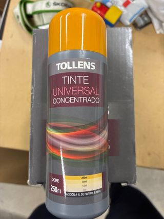 Tinte universal concentrado de la marca Tollens en color ocre. - Formato: 250ml. - Adición recomendada: 5ml, 15ml, 50ml o 250ml por cada 4L de pintura blanca. - 6 unidades disponibles de 250ml