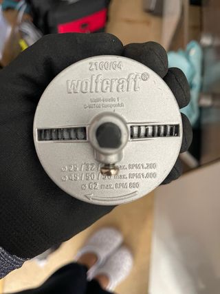 Corona de corte Wolfcraft 2160/64. - Diámetro de corte de 25 a 62 mm. - Velocidad máxima de 1.200 RPM para diámetros de 25/32 mm. - Velocidad máxima de 1.000 RPM para diámetros de 45/50/50 mm. - Velocidad máxima de 800 RPM para diámetros de 62 mm.