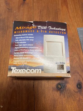 Detector de movimiento y PIR Mirage Dual Technology de Texecom. - Tecnología dual: Microondas y PIR. - Antena PCB de última generación. - Rango de microondas totalmente ajustable. - Indicación mediante 3 LEDs. - Análisis de señal con lógica difusa. - Compensación de temperatura digital. - Indicación de cierre y FTA (First to Alarm). - Tecnología de montaje en superficie. - Aprendizaje ambiental basado en red neuronal. - Desactivación remota de LED. - Soportes antivandálicos patentados con paso de cables.
