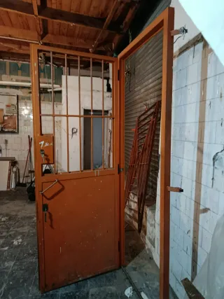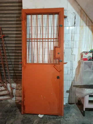 Conjunto de puerta y reja de hierro en color naranja.nuevo a estrenar PUERTA Ancho 86 cm Alto 2,10 Profundo 4'05 Reja 87 ancho 172 alto 3,05 grosor RECOJIDA EN BADALONA - Material: Hierro. - Color: Naranja.