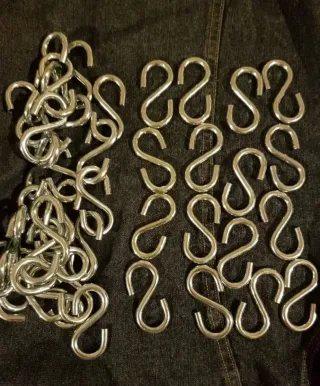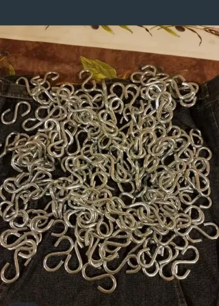 Se vende un lote de ganchos metálicos con forma de S de 6cm.x 3cm. Grosor 5mm. Son 180 piezas. Todo por 15€. - Material: Metal. - Forma: S.