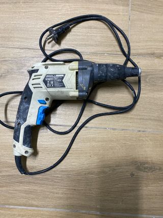 Atornillador de placas de yeso Mac Allister. - Modelo MSSD400. - Color blanco y negro con detalles en azul.
