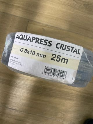 Manguera transparente Aquapress Cristal. - Diámetro: 8x10 mm - Longitud: 25 metros - Fabricada en Italia