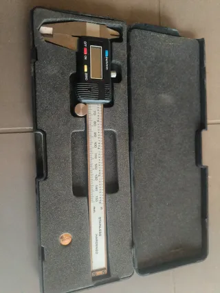 Vendo calibrador digital de precisión de la marca Preciva, totalmente nuevo a estrenar. Es una herramienta robusta y de alta calidad, ideal tanto para uso doméstico como profesional. Características principales: Material: Acero inoxidable endurecido (resistente a la corrosión). Precisión: ± 0.2 mm con resolución de 0.01 mm / 0.0005 pulgadas. Protección IP54: Resistente al polvo y a salpicaduras de agua. Pantalla LCD grande: Lectura fácil y clara. Funciones: Cambio entre mm/pulgadas, encendido/apagado automático y tornillo de bloqueo. Extras: Incluye estuche rígido de transporte para mayor protección. Deslizamiento muy suave