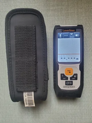 Medidor láser de distancias con un alcance de 50 metros. Dispone de múltiples funciones: volúmenes, superficies, y medición continua. Cuenta con 2 niveles de medición conmutables delante y detrás. Está equipado con nivel de burbuja digital y sensor de inclinación de 360°. Funciona con 2 pilas de 1,5 V tipo AA (incluidas). func. de superf. y de volumen, Medic. contínua mín./máx, Nivel de burbuja digital, Calibr. del sensor de inclin. (Tilt), Sensor de inclin. de 360°Medidor láser Laserrange-Master I5 50 metros