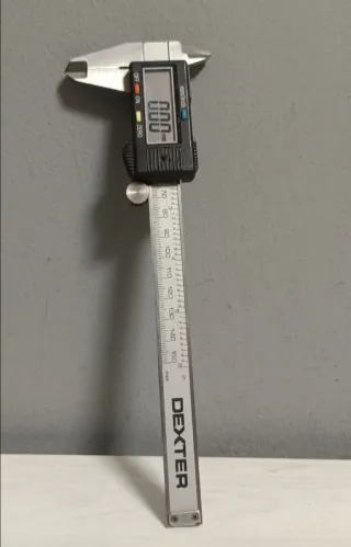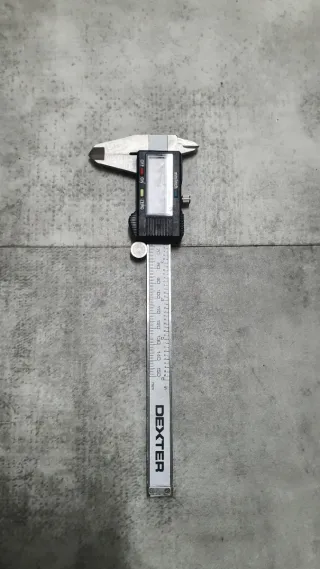 Calibrador digital de la marca Dexter. Permite mediciones precisas. - Pantalla digital clara. - Botones de encendido, apagado y puesta a cero. - Escala en mm y pulgadas.