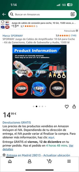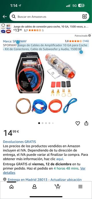 Juego Cables Amplificador Coche 10 GA