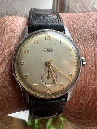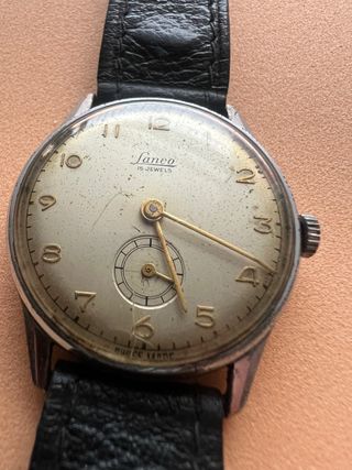 Este reloj es un modelo vintage de la marca suiza Lanco, fabricado por Langendorf Watch Company, con 15 rubíes y mecanismo de cuerda manual. La marca Lanco se lanzó en los años 1950, destacando por su artesanía fina y movimientos de calidad, como calibres similares al 1113 basado en FHF. Produjo relojes hasta 1973, con revival en los 70, y es valorada hoy en el mercado vintage - Preciosa maquinaria en muy buen estado de conservación, para una pieza de mas de 60 años - Mantiene muy buen el tiempo - Subesfera para los segundos. - Fabricado en Suiza - Se le puede cambiar el plexi y la correa renovando su aspecto