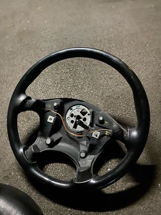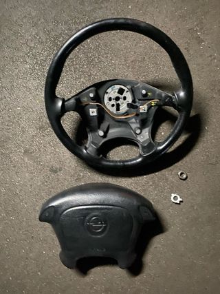 vendo volante de cuero con airbag de opel tigra en buen estado teniendo en cuenta los años tiene pequeños desgastes valido para astra vectra calibra corsa etc