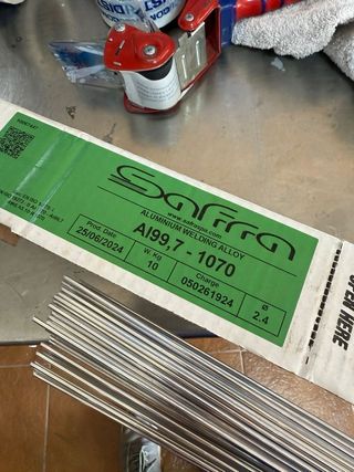 Varillas de soldadura de aluminio de la marca Safra. Son perfectas para tus proyectos de soldadura TIG. - Aleación: A199,7 - 1070 - Peso: 1 Kg calibre 2,4 mm 63687509 4 para consultas