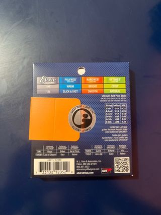 Juego de cuerdas Elixir para guitarra eléctrica, modelo Nanoweb. Tengo 8 paquetes, pero si quiere comprar 1 también se lo puedo vender. Los 8 paquetes serían 65€. - Calibre: 10-46 (Light). - Material: Acero niquelado. - Recubrimiento: Nanoweb. - Sonido: Brillante y suave. - Durabilidad: Larga vida útil.